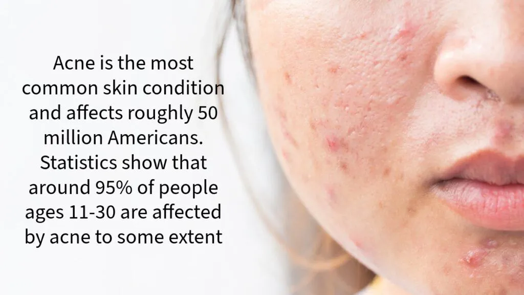 Acne is a common condition from which many people of all ages deal and it affects roughly 50 million Americans. Statistics show that around 95% of people ages 11-30 are affected by acne to some extent. It is an inflammatory skin condition in which hair follicles get clogged with dead skin cells and oil. However, there can be other underlying conditions that can cause acne as well.