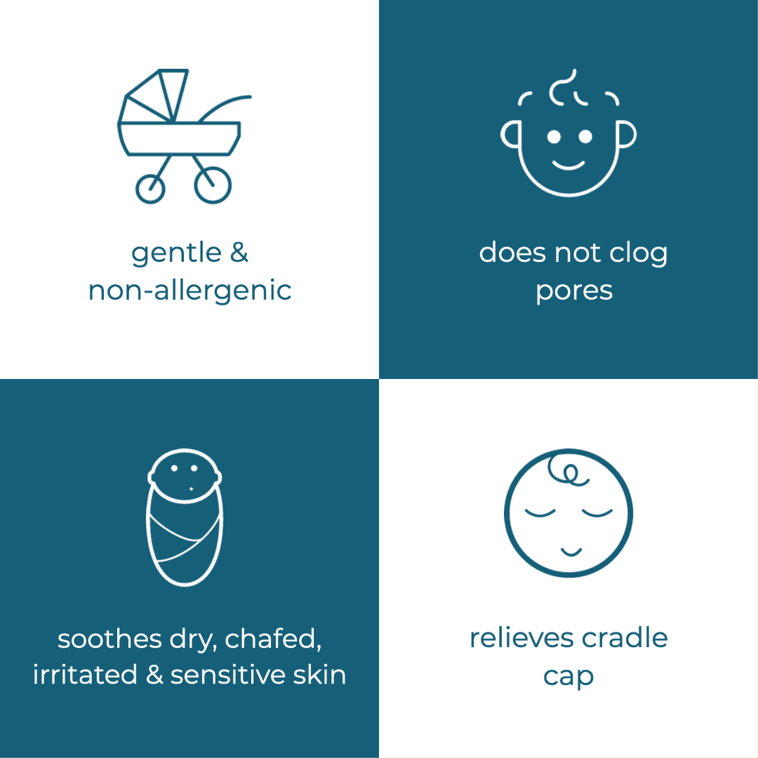 P.S. We’ve also heard that it helps keep mamma’s skin feeling great as well, relieving itchy stretched skin. You too can have baby-soft skin!