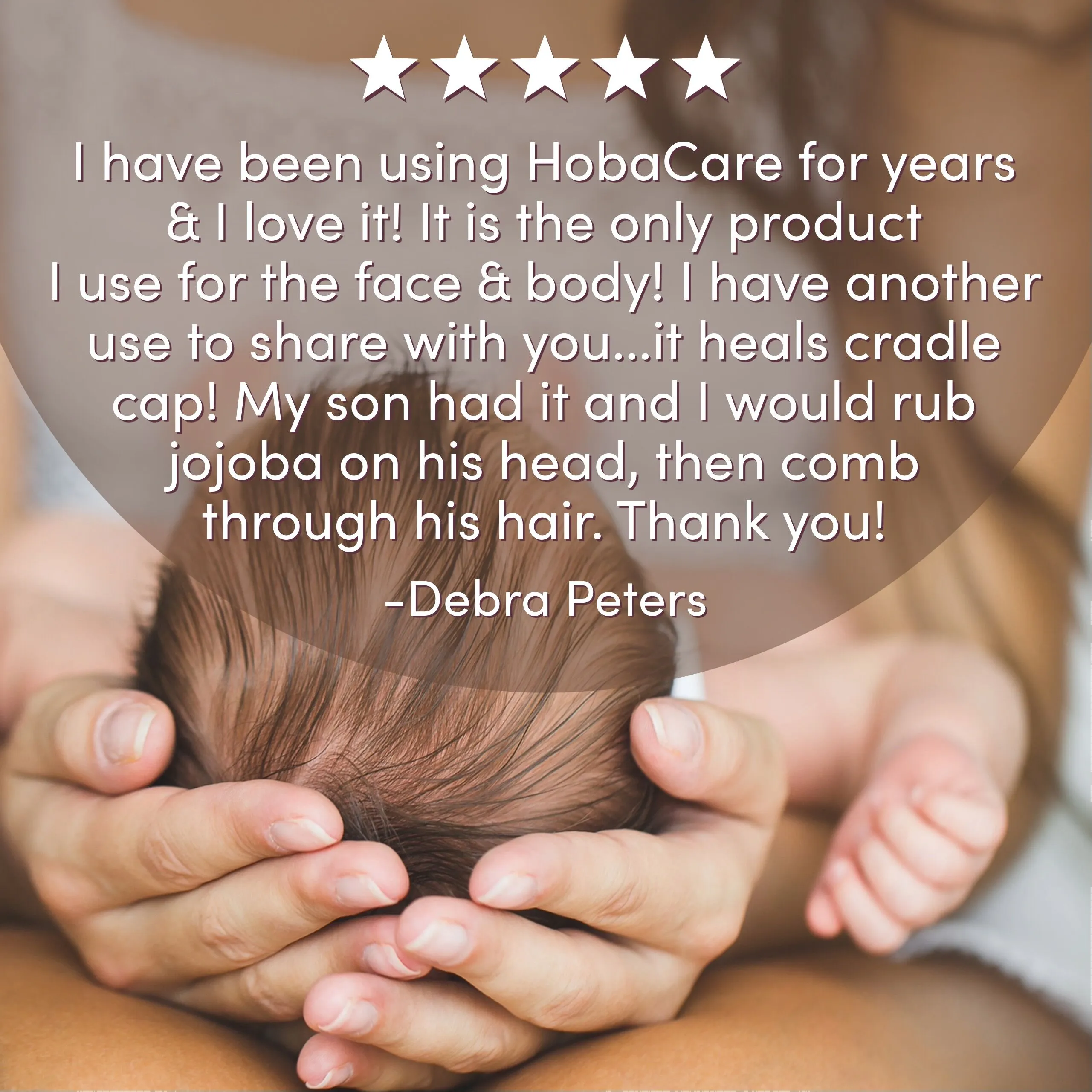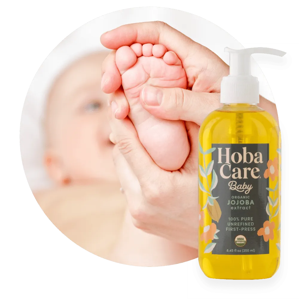 Use our HobaCare and HobaCare Organic jojoba oil after a bath and after each diaper change, for your baby’s hair, eczema, or your newborn’s dry, chafed, irritated, and sensitive skin. Give your baby a soothing massage. HobaCare Jojoba Oil Baby relieves cradle cap. And remember, it’s for the whole family.