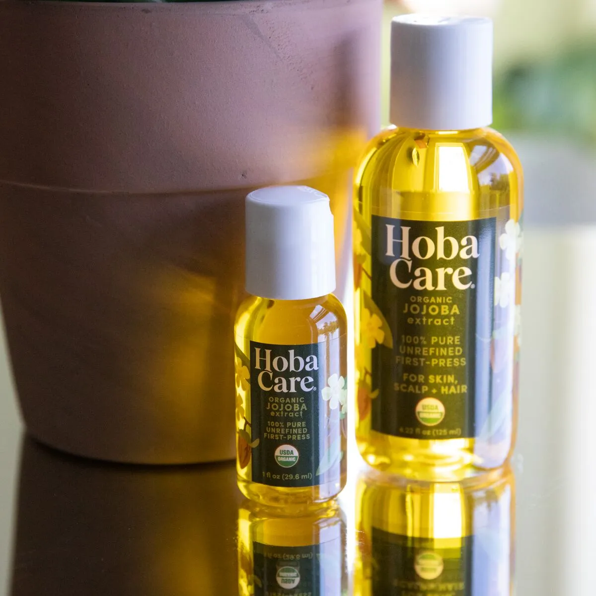 HobaCare is premium organic jojoba and it is very different from commonly available commercial grades of organic jojoba because we source directly from our cooperative of jojoba farms. The Original Jojoba Company is a vertically integrated company and we control the quality from SEED to BOTTLE to your home or business, ensuring it is the best quality of organic jojoba available on the market. Each batch is cold pressed without added heat or chemicals like hexane from a single crop year seed harvest. HobaCare Organic Jojoba is free from added fragrance, certified vegan and cruelty-free, free from added fragrances, and it is nut-free.
