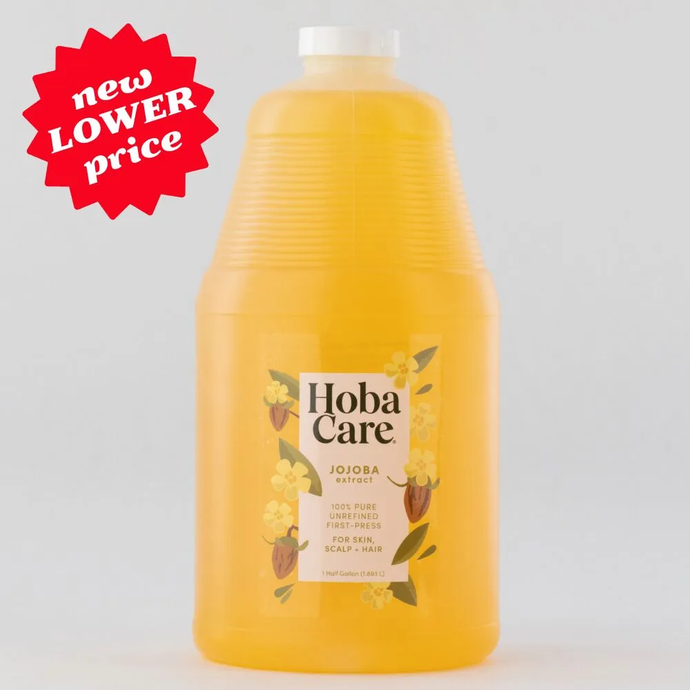 Our professional clients love the convenience of HobaCare in a 64 fl oz (half-gallon) bottle. It’s the perfect size when you’re using Jojoba oil for massage, esthetics, as a product ingredient, as an essential oil carrier and in other professional ways but don’t quite need a gallon (though with jojoba’s virtually indefinite shelf life you can save money by upgrading to a gallon). We also offer Certified Organic HobaCare.