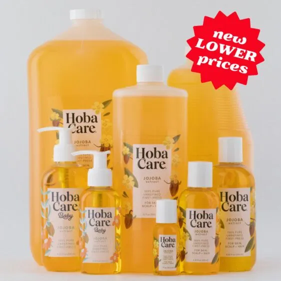 Our 100% pure cold-pressed HobaCare Jojoba oil is expeller-pressed (without any added heat, so it is as cold-pressed as jojoba gets, from a single crop year seed harvest. It is very different from commonly available commercial grades of jojoba because we source our HobaCare jojoba extract directly from our cooperative of farms and control the quality from seed to bottle to your home or business, ensuring it is the best available. We also offer Certified Organic HobaCare.